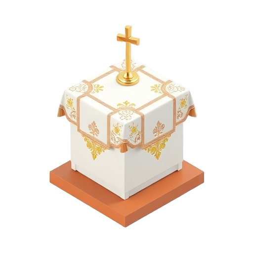 An altar cloth is a liturgical linen draped over the altar in Christian churches, typically made from materials like polyester, cotton, or pure linen, often with embroidery for religious services.