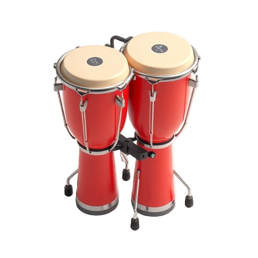 Bongo drums are a pair of small, open-bottomed hand drums of different sizes tuned to produce high and low tones, commonly used in Latin music and percussion ensembles.