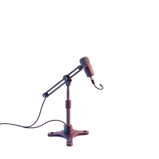 A boom arm is a adjustable microphone arm that mounts to a desk or stand, used in audio equipment for positioning microphones flexibly during podcasting, streaming, or recording.