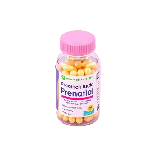 A bottle of prenatal vitamins is a daily multivitamin supplement containing folic acid, iron, DHA, and other essential nutrients designed to support maternal health and fetal development during pregnancy.