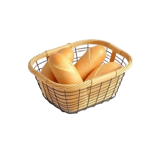 A tableware bread basket used for serving bread and rolls at the table, typically made from woven metal, rattan, or wire materials.