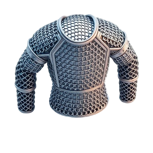 A chainmail shirt is a flexible armor garment made of thousands of interlinked metal rings, typically covering the torso like a hauberk or haubergeon, used in historical reenactment, LARP, or as costume armor.