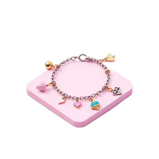A charm bracelet is a jewelry piece consisting of a chain base with detachable charms that allow for personalization, commonly found in the jewelry watches category as an everyday accessory.