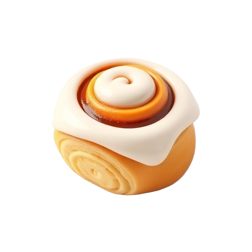 A cinnamon roll is a sweet baked good made from yeast-leavened dough rolled with cinnamon-sugar filling, topped with icing, commonly sold as groceries in packs of raw dough to bake at home.