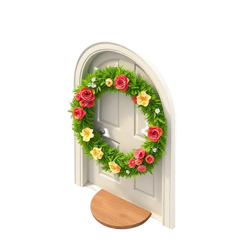 A door wreath is a decorative circular arrangement of flowers, greenery, or other materials hung on front doors for home decor and seasonal enhancement.
