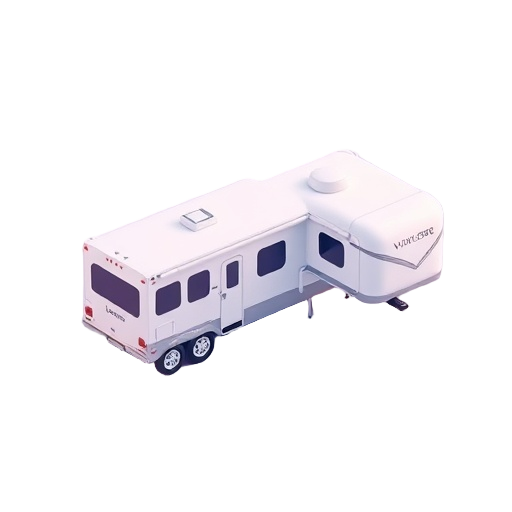 A fifth wheel trailer is a large towable RV that connects to a special hitch in a pickup truck bed, designed for extended camping and travel.