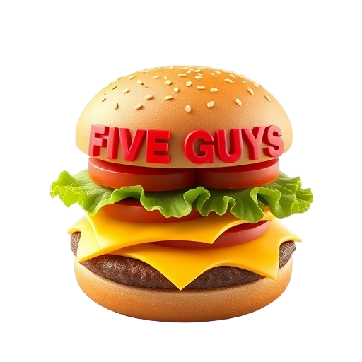 A cheeseburger from Five Guys, a fast-casual burger restaurant chain known for customizable made-to-order burgers.