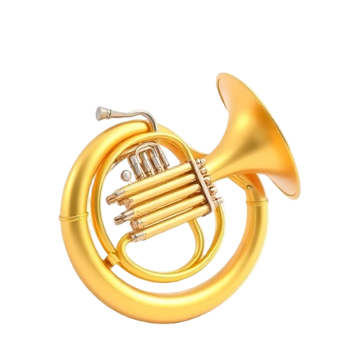 A French horn is a brass musical instrument with a coiled conical bore, typically in F or double F/Bb, used in orchestras and bands.