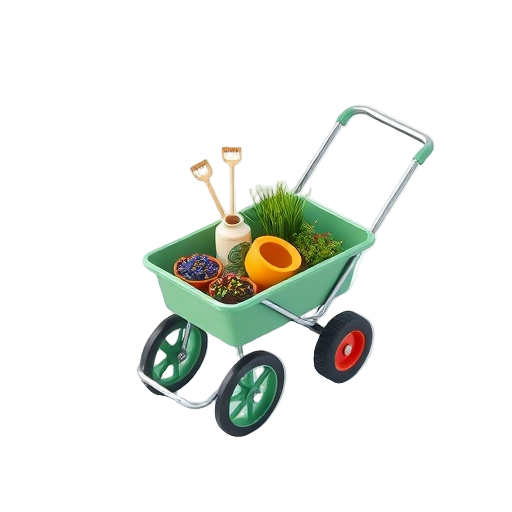 A garden cart is a wheeled utility vehicle designed for transporting garden plants, tools, soil, and supplies around yards or gardens.