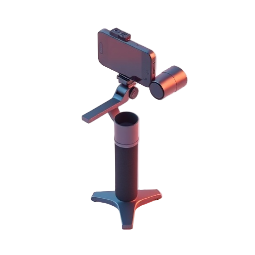 A gimbal is a motorized 3-axis stabilizer used in photography to smoothly stabilize cameras or smartphones during video recording.