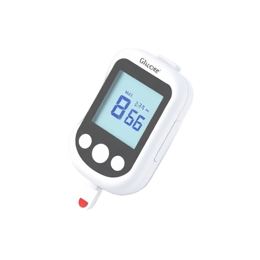 A portable device used to measure blood sugar levels by analyzing a small blood sample from a fingerstick.
