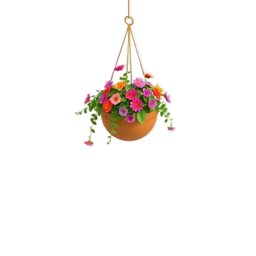 A hanging basket in the context of garden plants is a pre-planted container of annual flowers or foliage suspended for porches, patios, or gardens, typically 10-12 inches in diameter.