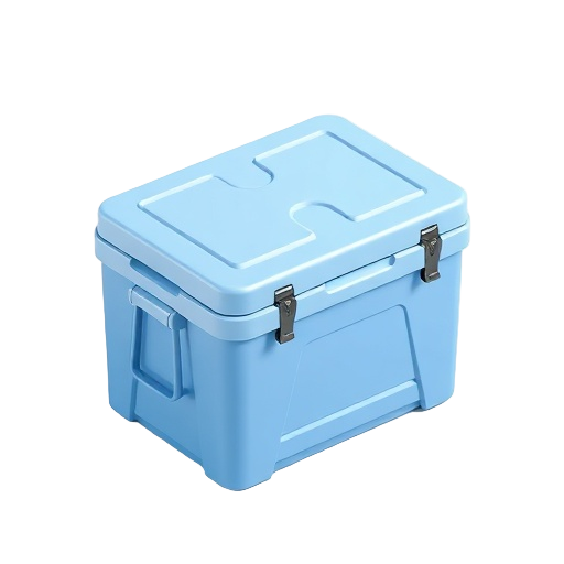 A portable hard-sided insulated container designed to keep food and beverages cold during outdoor activities, camping, and events.