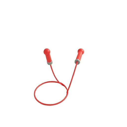 A jump rope is a basic sports equipment item consisting of a cord with handles used for cardio fitness training and skipping exercises.