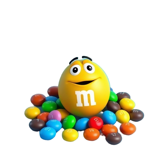 M&M's are small chocolate candies with a colorful candy shell, typically sold in small bags as a common grocery snack.