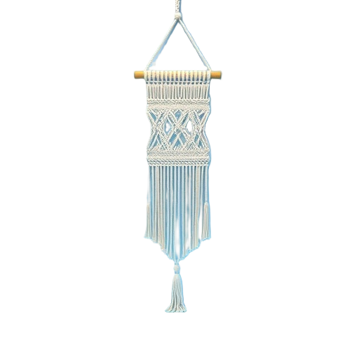 A macramé wall hanging is a handmade decorative piece created by knotting cotton cord or yarn into intricate boho-style patterns for home decor.