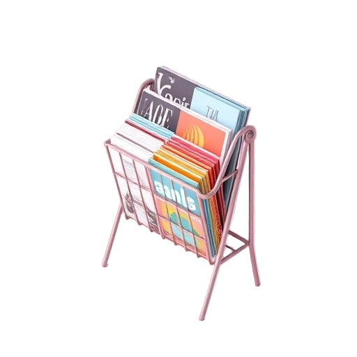 A magazine rack is a freestanding or wall-mounted home decor item designed to organize and stylishly display magazines and periodicals in living rooms or reading areas.