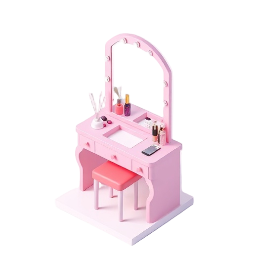 A furniture piece combining a mirror with a desk or table surface, typically used for applying makeup and storing cosmetics.