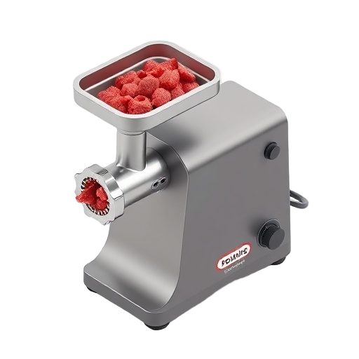 A home-use electric meat grinder for processing ground meat for burgers, sausages, and other ground meat dishes.