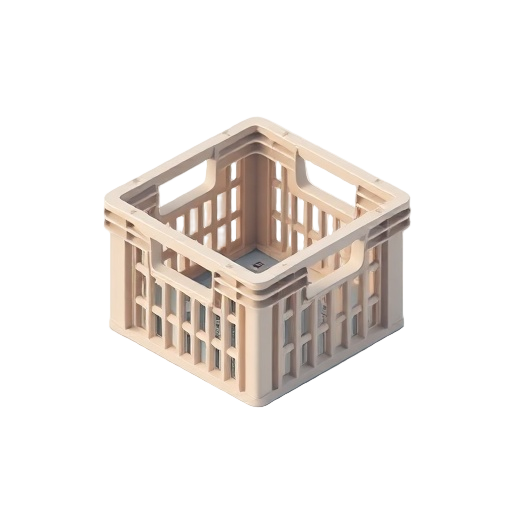 A milk crate is a heavy-duty, stackable plastic storage container, typically 13x13x11 inches or 19x13x11 inches in size, originally designed for dairy transport but commonly used for household organization, tools, and records.