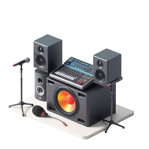 A public address system combining powered speakers, mixer, and microphone for small to medium venues like clubs, churches, and events.