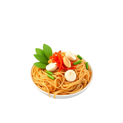 Pad Thai is a popular Thai stir-fried rice noodle dish with egg, bean sprouts, scallions, tofu, peanuts, and a tangy sauce, commonly served in fast casual or restaurant settings.