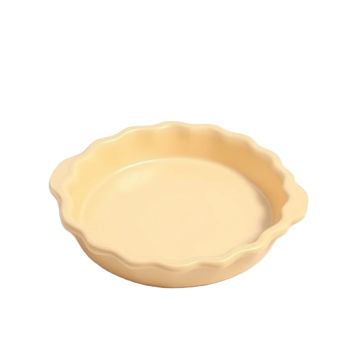 A pie pan is a shallow round kitchenware dish used for baking pies, tarts, quiches, and similar dishes, typically made of glass, metal, or ceramic.