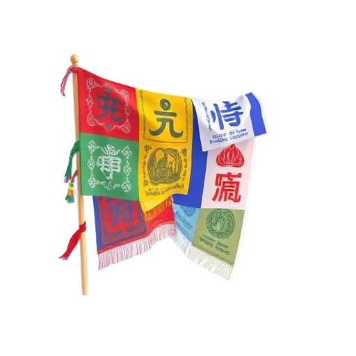 Tibetan prayer flags are colorful rectangular cloths printed with sacred Buddhist mantras, symbols, and prayers, traditionally hung to spread blessings with the wind in religious and spiritual contexts.