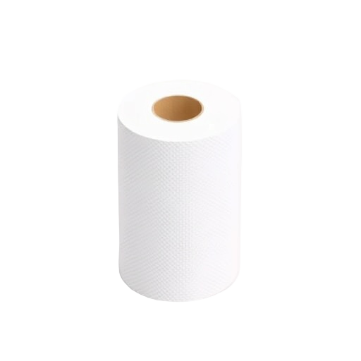 A roll of paper towels is a standard household item consisting of perforated sheets of absorbent paper on a cardboard core, typically used for cleaning and wiping surfaces.