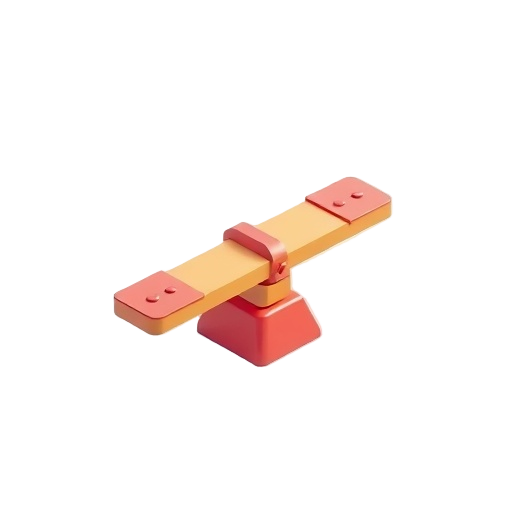 A seesaw is a classic playground toy consisting of a long board pivoted in the middle, allowing two or more children to bounce up and down by pushing with their feet.