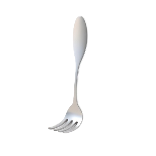 A serving fork is a large dining utensil used to serve food from platters or bowls at the table, typically made of stainless steel.