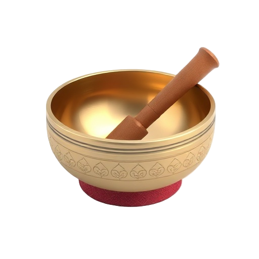 A handcrafted brass bowl used in meditation, sound healing, and spiritual practices that produces resonant tones when struck or played with a mallet.