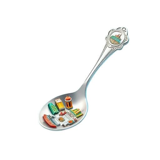 A souvenir spoon is a small collectible spoon, often sterling silver or silver-plated, engraved or enameled with tourist landmarks, cities, or events, popular from the late 19th to early 20th century.