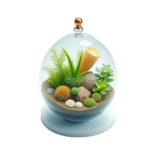 A terrarium in home decor context is a sealed glass container for displaying plants, moss, or decorative elements as an ornamental piece.