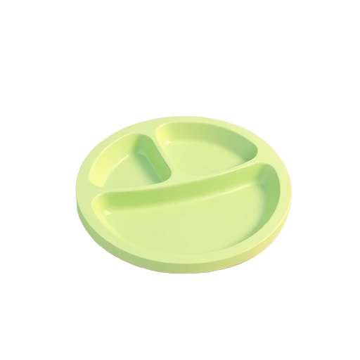 A plastic or silicone divided plate designed for toddlers and young children, typically 6-8 inches in diameter.