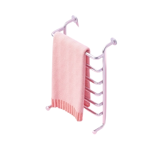 A towel rack is a common household bathroom accessory designed to hold and organize towels, typically wall-mounted or freestanding.