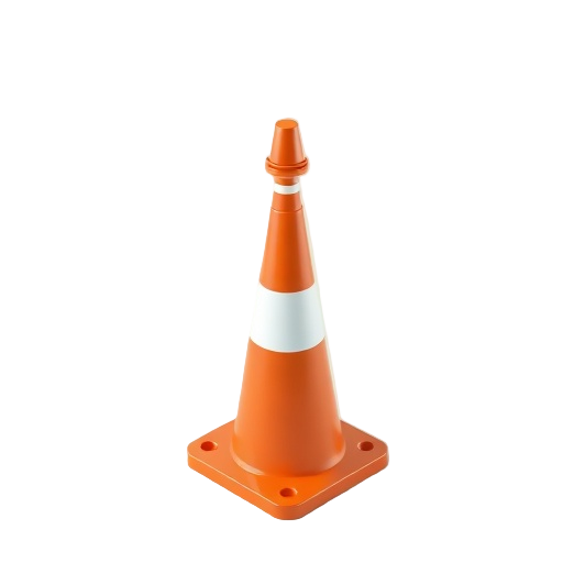 A traffic cone is a standard orange PVC safety cone, typically 18 inches tall, used for directing traffic and marking hazards in construction or roadwork.