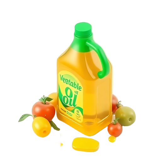 Vegetable oil is a common edible oil derived from plants like soybeans, canola, or corn, used for cooking, frying, and baking in everyday grocery shopping.