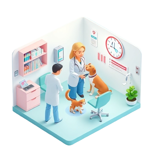 A routine veterinary checkup or wellness exam for pets, typically covering a basic physical examination for dogs or cats.