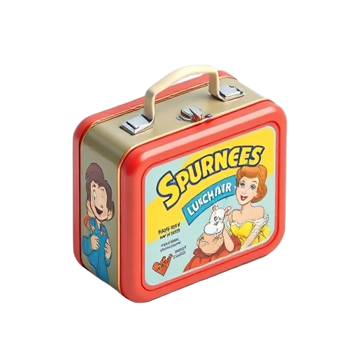 A collectible metal or vinyl lunch box from the 1950s-1980s featuring licensed characters or pop culture themes.