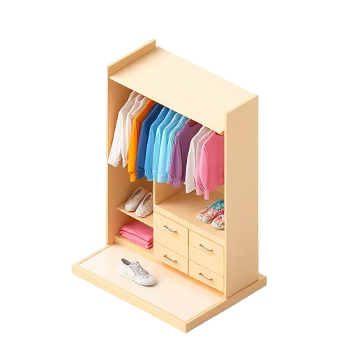 A freestanding wardrobe is a tall cabinet-like piece of bedroom furniture with a hanging rod, shelves, and sometimes drawers for storing clothes, often used as an alternative to a closet.