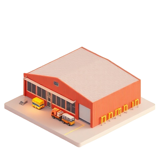 A standard warehouse building structure used for storage and distribution, typically 10,000 square feet.