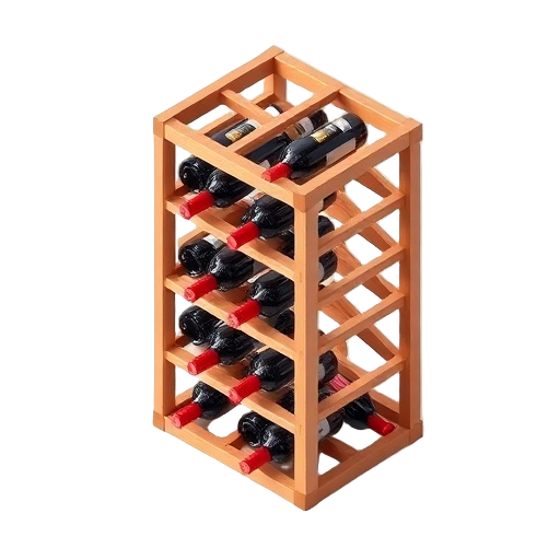 A furniture piece designed to store and display wine bottles, typically made of wood or metal with multiple bottle holders.