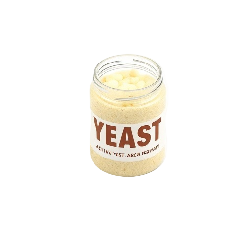 Active dry yeast is a common baking ingredient used to leaven bread, pizza dough, and other baked goods, sold in small jars or packets for home use.